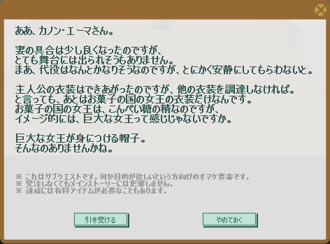 演出家クエスト39:「巨大な女王が身につける帽子」を納品