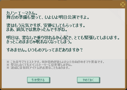 さらに、ボローニ先生が眠れるように「いつものアレ」を渡し、歌劇「くるみ割り人形」のクエストを全て終了しました。