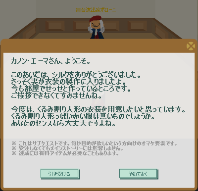演出家クエスト36:くるみ割り人形っぽい赤い服を納品