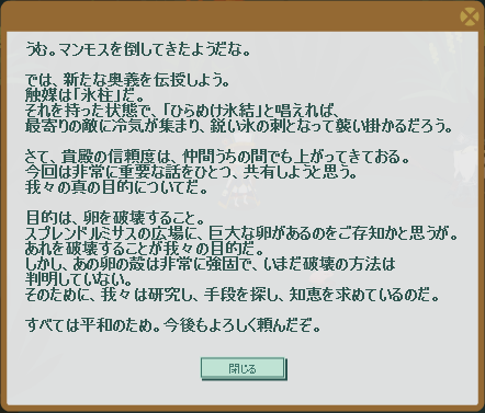 張り切って禁種の魔法「とどろけ濃霧」を使いますが、「火炎」ほどダメージが大きくないらしく、なかなかダウンしてくれず苦労しました(汗)