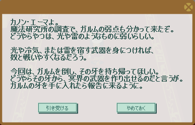 次(国王クエスト52)は「ガルムの牙」を納品せよ、とのことorz