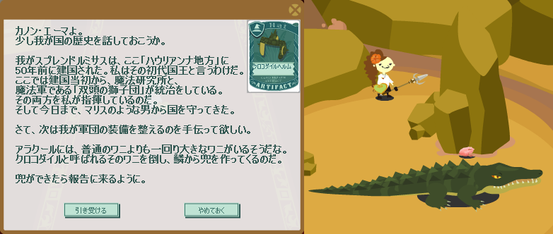 国王クエスト37:クロコダイルヘルムを渡す