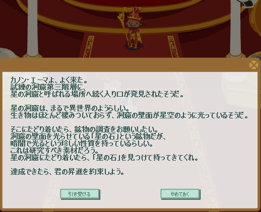 前回クエストで預言者マリスの情報が出たので、次は『竜の国か?』と思わせておいて、実際の任務は「星の洞窟」ですよ。