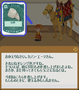 お礼は「もしものときに、使えるかもしれない」という「包帯」でした。