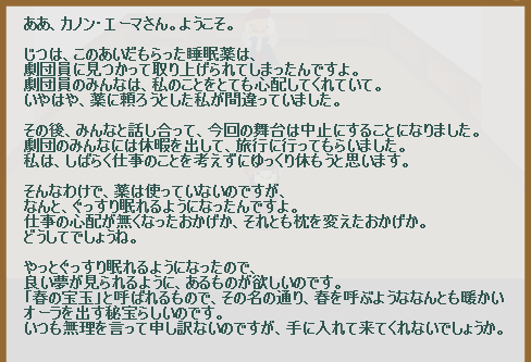 演出家クエスト54:「春の宝玉」を納品
