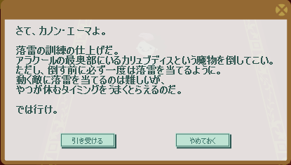 モーリアス王には『落雷の訓練』として課せられたクエストですが、肝心の「落雷」を使ったのはカリュブディスとバトルした1回だけ。