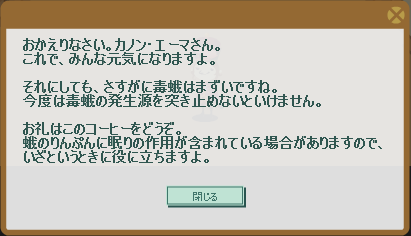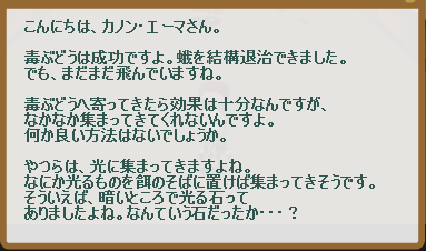 しかし、前回までの解毒アイテムといい、毒蛾対策の品ばかり渡されますよ。