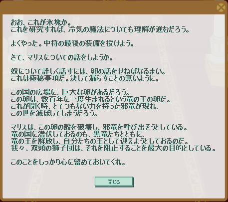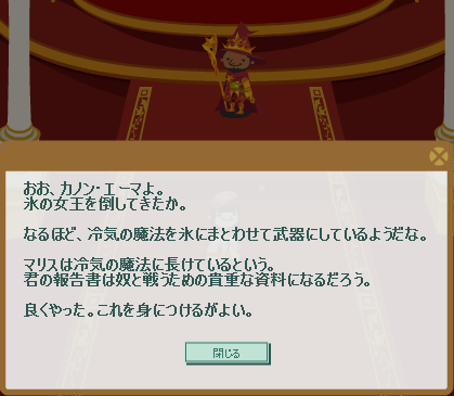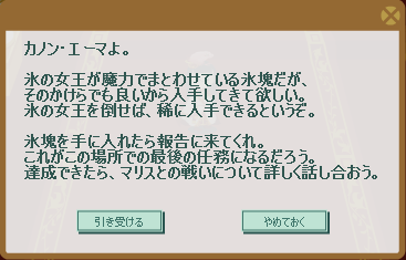 氷の女王からドロップするレアアイテム「氷塊」を要求されました。