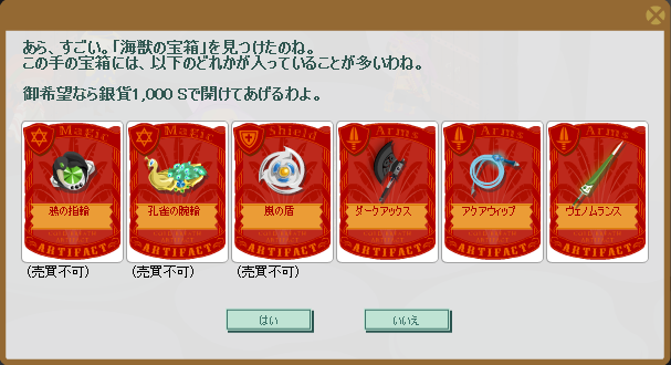 どれどれ……「海獣の宝箱」の中身は↓