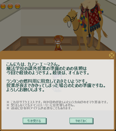 魔法学校の課外授業に必要なアイテムの注文は今回で最後のようです。