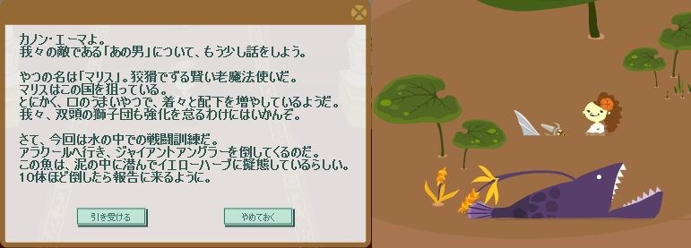 前回と同じく不穏な前振りから始まる今度の討伐対象は、ジャイアントアングラー。