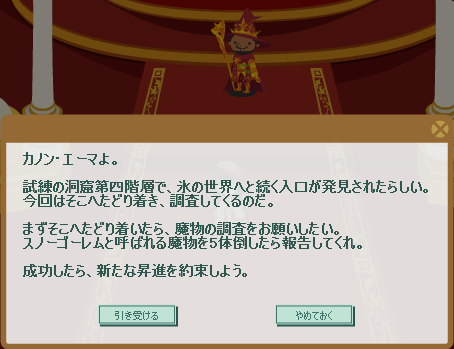 モーリアス王のクエストは、今度の任務から「氷の世界」がメインになるようです。