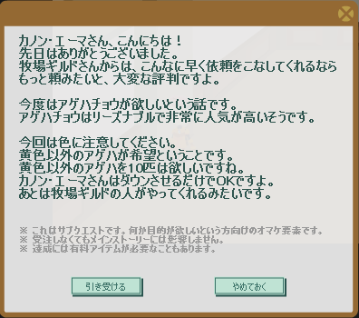 商人クエスト53:「黄色以外のアゲハチョウ」10匹をダウンさせる