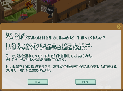 そして、家具ギルドからクエスト「トログロダイトのヒレ水晶編」が発注されました。