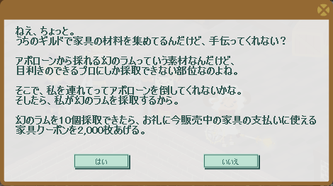 昨日(11/15)は家具クエストを受注したのですが↓