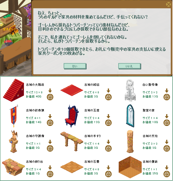 と同時に、家具クエスト「ゴーレムのトラバーチン編」も発注されました。