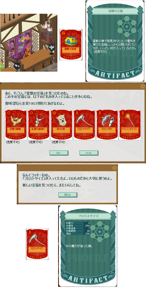 しかも、この後もう一度潜ったミサスで、ケイローンお爺ちゃんから「賢者の宝箱」を、ケット・シーから「猫の宝箱」がドロップ。更にスプリガンが二羽(匹?)現れて「青の宝玉」も2個getしました。