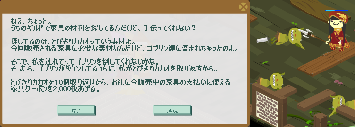 と言う訳で、昨日(1/24)は家具クエストを受注しました。
