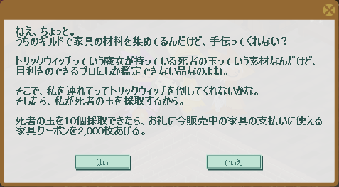 昨日(10/18)は土曜日でしたので、恒例の家具クエストを受注するために本部ギルドを訪問すると↓