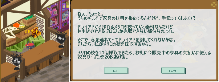 昨日(1/16)から「冬の植物シリーズ」の家具販売にあわせて、新しい家具クエストが始まりました。