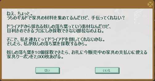 一昨日(9/27)は土曜日でしたので、恒例の家具クエストを受注しました。