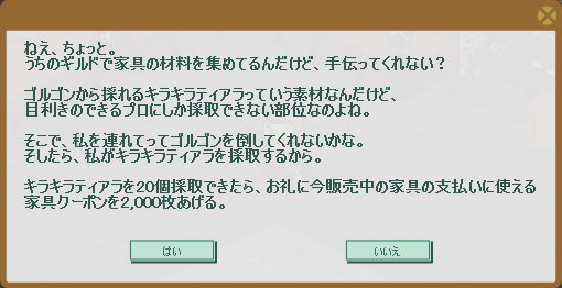 この家具の支払いに使えるクーポンが貰えるクエストは↓