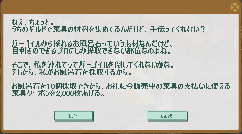 そして、家具ギルドからはクエスト「ガーゴイルのお風呂石編」が発注されました。