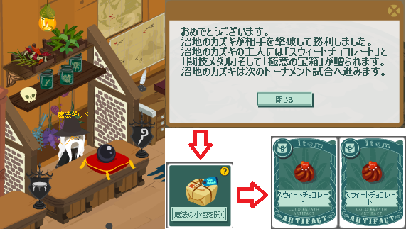 カズキは先月の闘技イベントでは自滅による初戦負けでしたので、これで雪辱を果たしたことになります。
