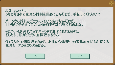 昨日(11/1)は土曜日でしたから、恒例の家具クエストを受注しました。
