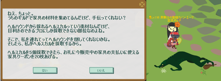 毎週土曜日恒例の家具クエスト。