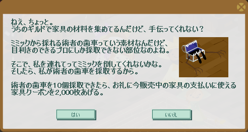 と言う訳で、恒例の家具クエストを受注しました。
