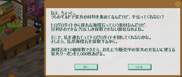 そして、家具ギルドのクエストは「トログロダイトの海楼石編」です。
