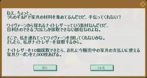 そんな状況下で、毎土曜日恒例の家具クエストを受注しました。