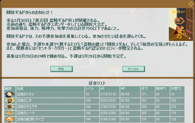 昨日(3/28)は、「第五回盗賊ギルド杯」の受付〆切日でした。