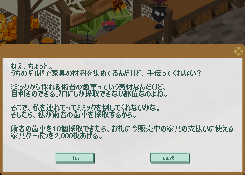 そして、家具ギルド発注のクエストは「ミミックの術者の歯車編」です。
