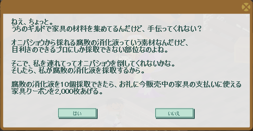 昨日(1/10)は土曜日でしたので、家具クエストを受注しました↓
