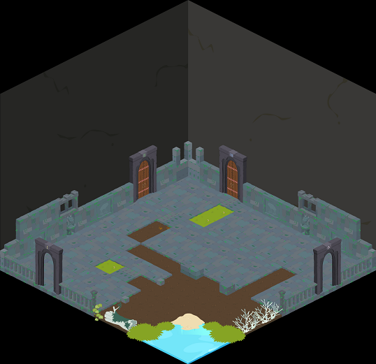 2の部屋は「闇夜の遺跡」というテーマで作ったのですが、廃墟にしては整い過ぎている感じがしたので、今回ところどころ床石を剥いで草を生やしてみました。